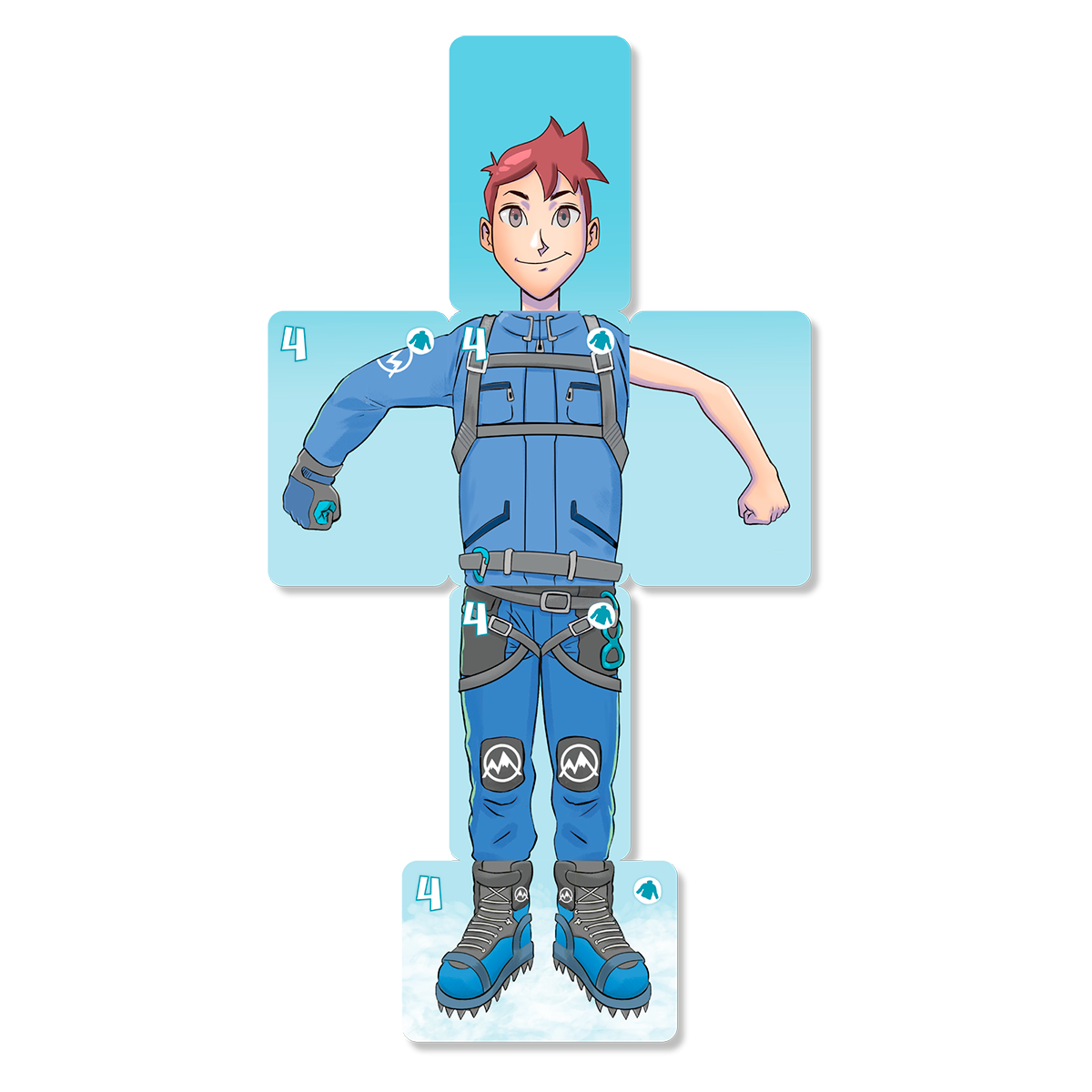 Cada jugador construye su montañista con 6 cartas de personaje, que colocará en su área de juego. Estas cartas forman a tu aventurero.