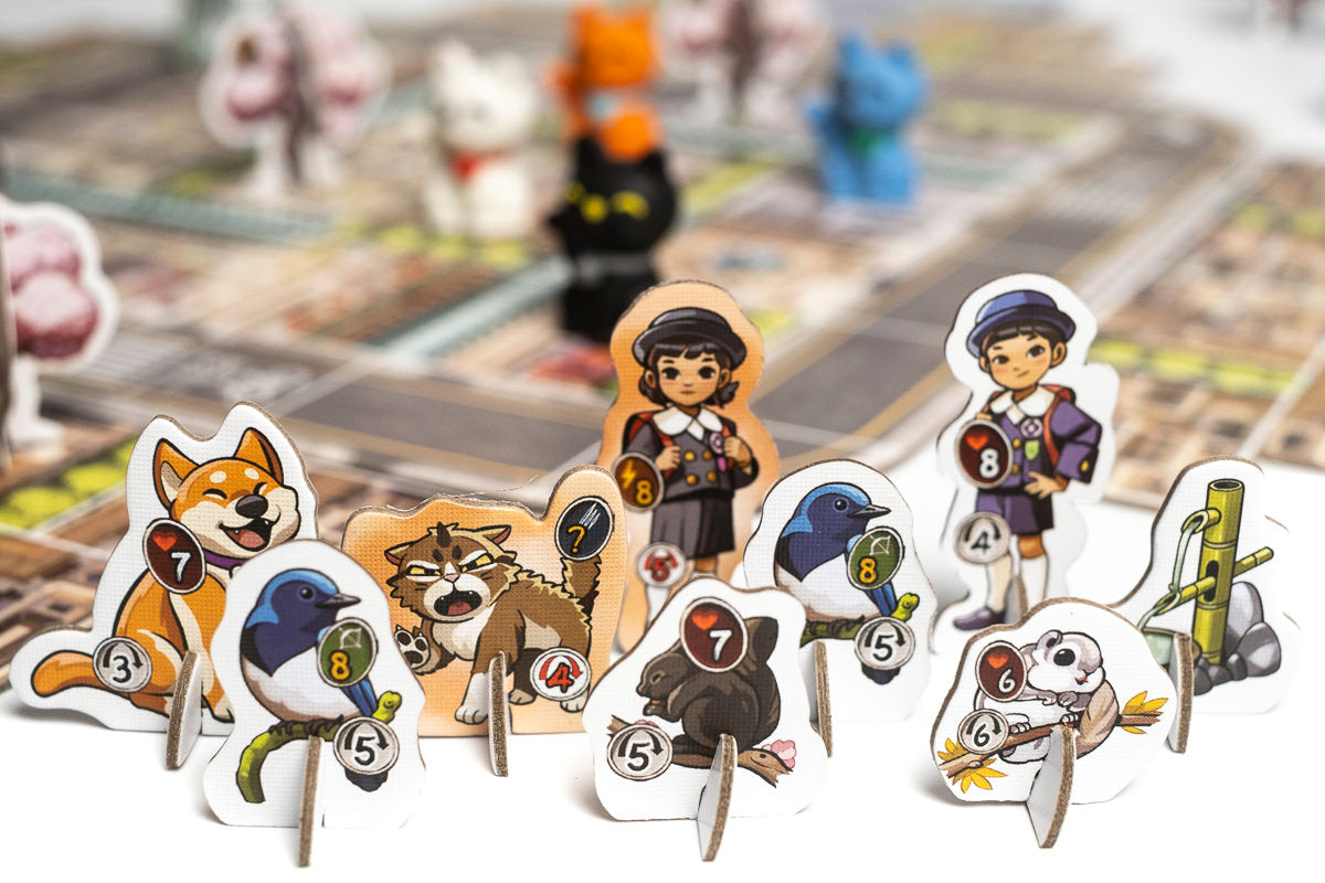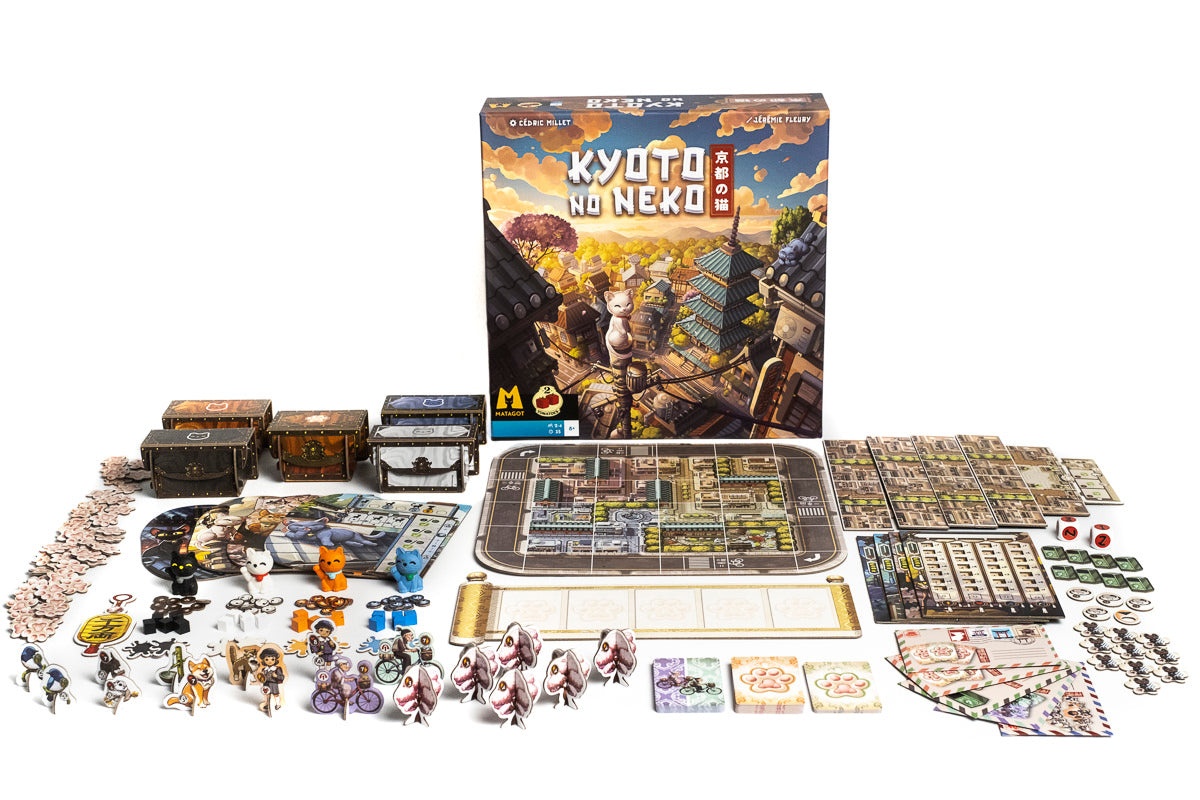 Gracias a su sistema de habilidades, Kyoto no Neko permite interactuar con distintos habitantes de Kioto, tanto animales como humanos. En cada turno podrás descubrir algo nuevo de la ciudad: desde insectos diminutos hasta objetos o personajes específicos. Algunos de estos elementos están representados con losetas de cartón y otros con figuras en vertical (standees), logrando una presencia visual espectacular.