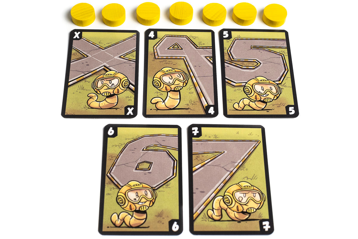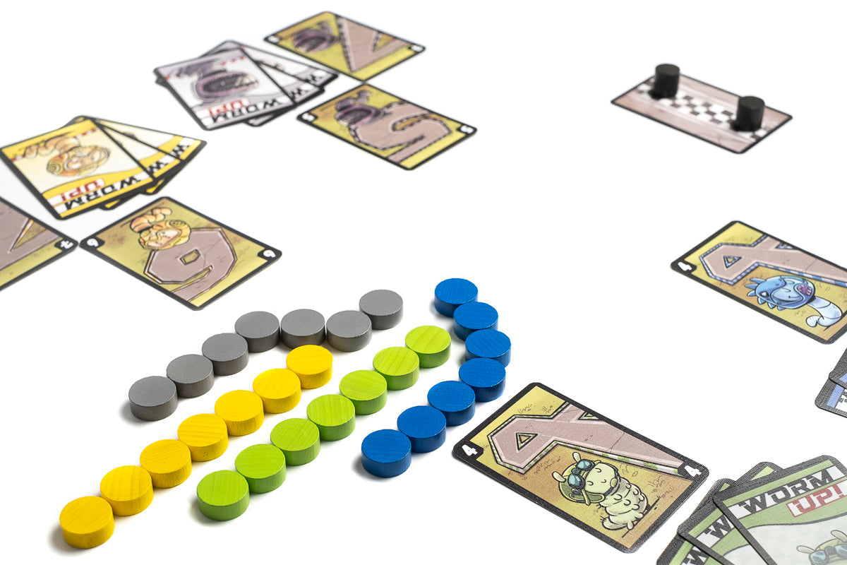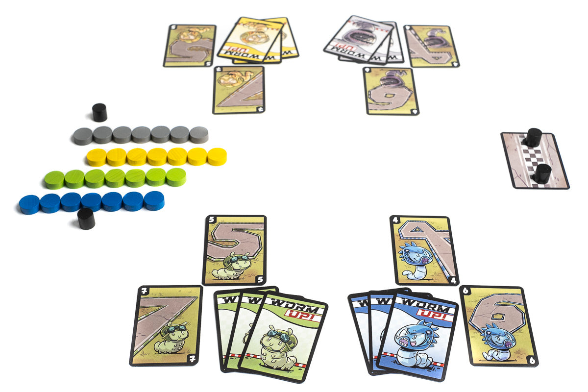 En este juego divertido y un poco loco, cada jugador controla un gusano formado por varios discos alineados. En cada turno, todos los jugadores eligen en secreto en su dado cuánto quieren moverse. Cuando se revelan las elecciones al mismo tiempo, los jugadores que hayan elegido el mismo número que alguien más pierden su movimiento ese turno. Los demás jugadores avanzan sus gusanos según el número elegido, tomando los discos de la parte trasera y llevándolos al frente, a veces curvándose un poco para intentar bloquear el movimiento de los demás gusanos.