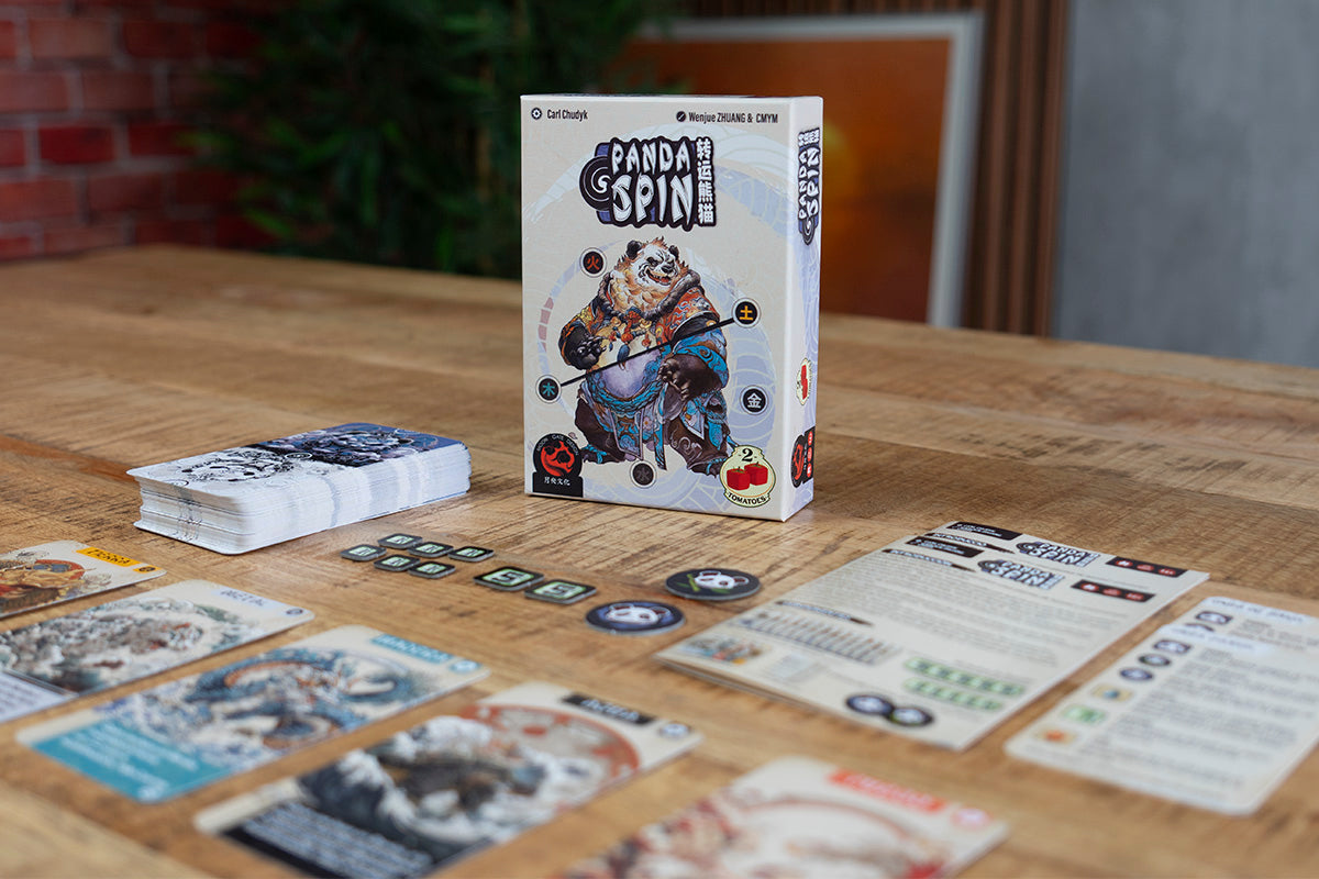 Panda Spin es un juego de cartas ágil y muy original en el que los jugadores intentan quedarse sin cartas mientras alimentan a sus pandas recolectando bambú. Combina la tensión de los juegos de escalera con giros inesperados que hacen que cada mano se sienta distinta.